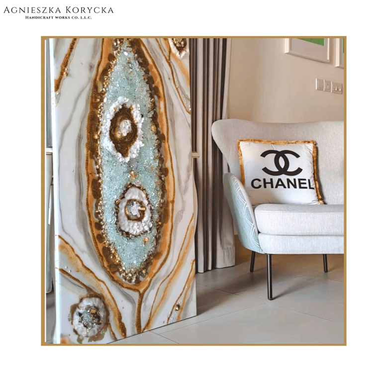 By Agnieszka Korycka – three-time DIFC Art Nights exhibitor, creating bespoke resin artworks and experiences for collectors, villas and hotels.